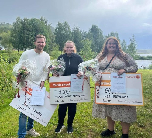 Från Vänster: Ledarstipendiat 2024 - Johan Grensell, Årets Landsbyggare 2024 - Ronja Hallin Lundqvist, Kulturstipendiat 2024 - Lisa Stenlund.